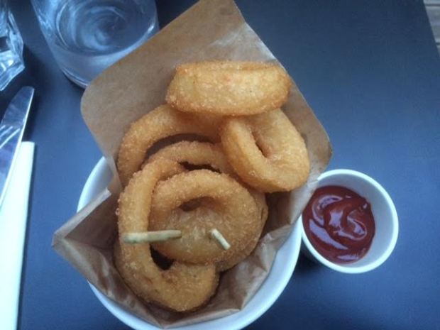 Nous avons choisi de partager les beignets d’oignons en entrée (3,80€), accompagnés de leur sauce barbecue. Rien à redire, la portion est relativement copieuse pour le prix et les beignets sont bons sans être exceptionnels.