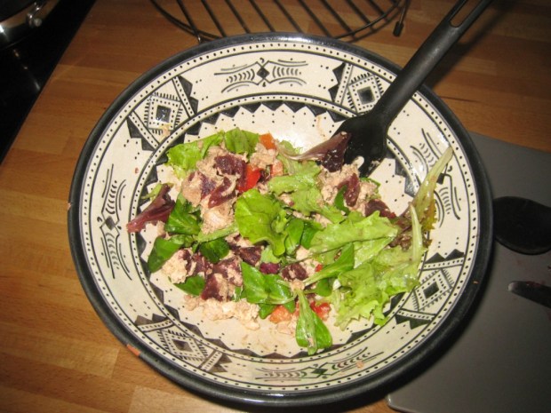 Fais cuire tes pâtes le temps indiqué sur le paquet ( 10 minutes s’il s’agit des Barilla). Je ne t’explique pas comment faire cuire des pâtes, reporte toi au mode d’emploi de l’emballage. Parallèlement tu mélanges le thon avec de la mayonnaise, ou du fromage blanc jusqu’à ce que ce soit bien onctueux ( ajoute du poivre) . Mets ensuite pèle mêle dans ton saladier les morceaux de betterave et de poivron , ainsi que la salade. Ajoutes y le basilic, l’échalote, une pincée de poivre, un pincée de de sel, de l’huile et de vinaigre. Remue le tout.