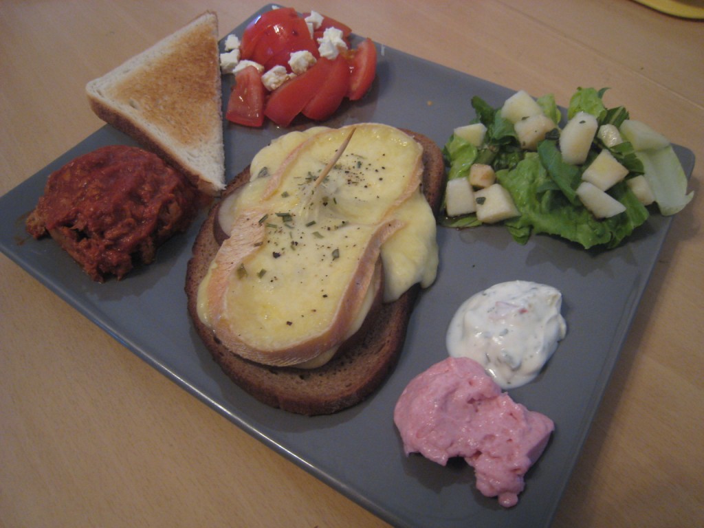 Rien de mieux pour utiliser les fonds de tiroirs et de frigo, les légumes, les viandes ou les fromages qui trainent. J’ai assorti ma tartine d’une mini salade tomate-fêta, salade-et le reste de poire de la recette, des miettes de thon mélangées à de la sauce tomate, du tarama, et du KTIPI ( spécialité greque au poivron). Avec un petit bout de pain grillé. Et le tour est joué. Facile !