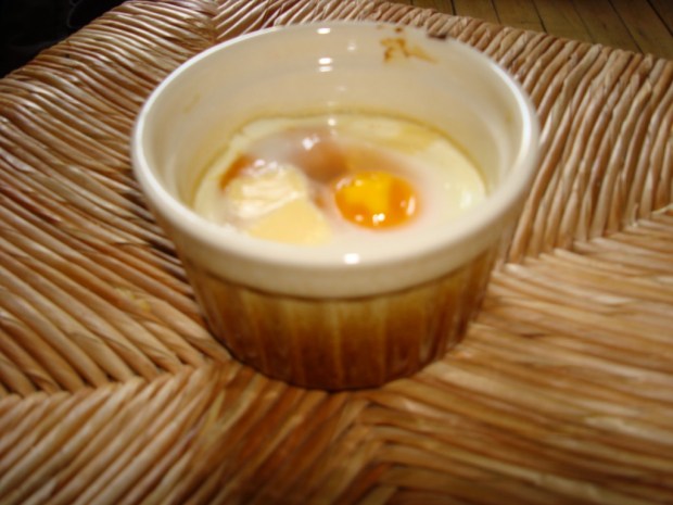 Expérience culinaire : Oeuf cocotte au potage de tomate et vache qui rit.