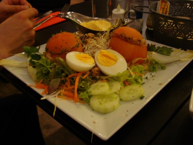 Voici une excellente adresse à Bruxelles, le restaurant L’entrée des artistes situé dans le quartier des Sablons à Bruxelles offre une cuisine de qualité : spécialités belges, pâtes, salades etc … La cuisine est gouteuse, délicieuse ! Je me suis laissée tenter par des pâtes végétariennes au pesto, et petits légumes croquants. (14,5€) Un délice ! Mes amis ont pris une spécialité locale : tomate aux crevettes grises accompagnées des fameuses frites Belges apparemment préparées dans de la graisse de porc hum hum(19,5€).