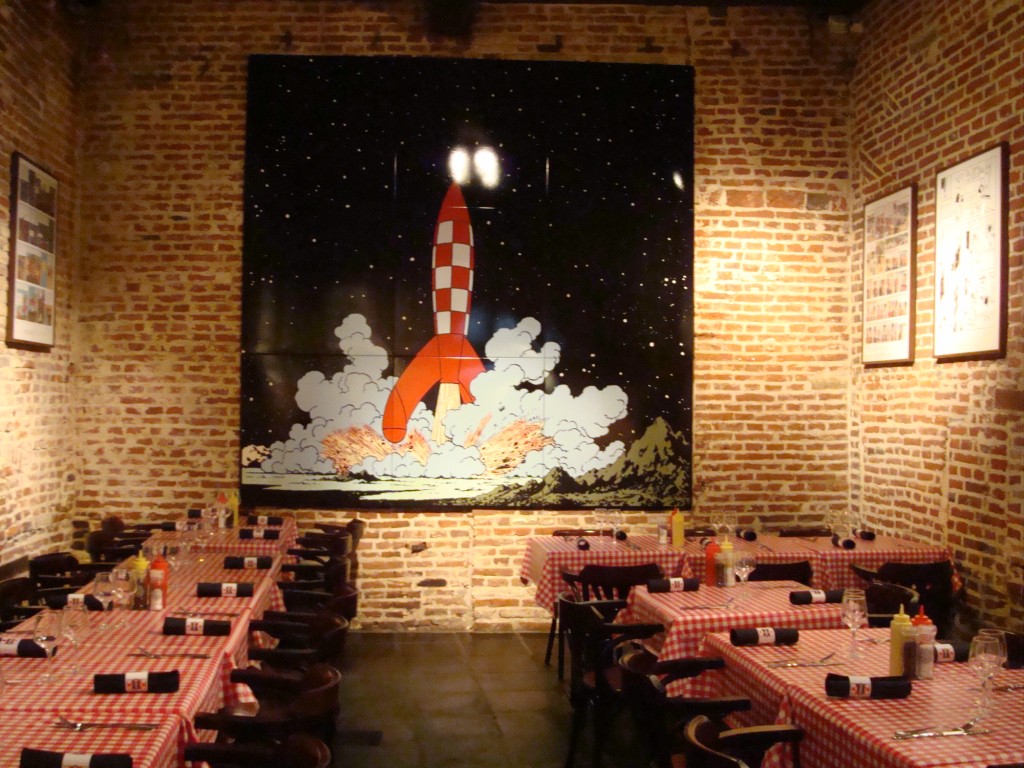Bruxelles regorge d’adresses originales. Le dimanche, nous avons terminé notre ballade par le Comics Café (quartier Sablons), une INSTITUTION ! Au rez de chaussée, une librairie consacrée à la BD. Au 1er étage, une brasserie au décor comics, et une galerie privée impressionnante! Betty Boop vous accueillera. C’est un mélange de musée de la BD, et de brasserie colorée au look de diner. On s’y sent tout de suite bien, même si l’endroit peut accueillir 150 convives. A ce moment de la journée ( 17h), il n’y avait pas foule, nous étions au calme parmi des personnages bien connus comme Tintin ou Le Chat de Geluck.