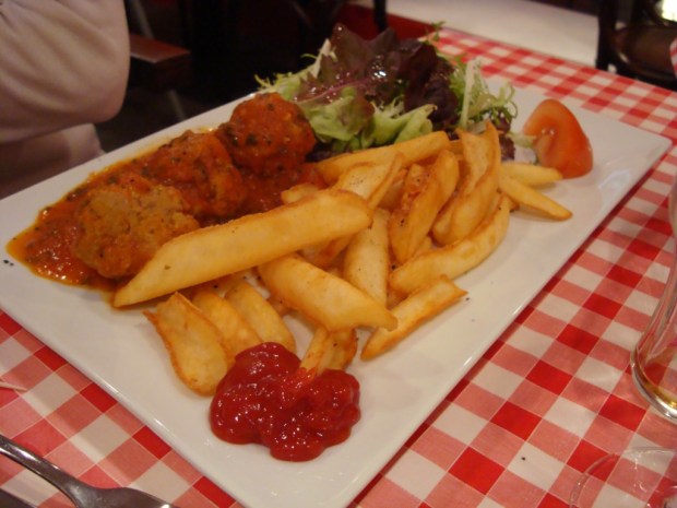 A la carte des spécialités belges ( comme les boulettes rouges de Camille) – 15€, des burgers ( comme mon Veggi Burger) à 15€ , ou encore des salades ( comme la salade César de Gab). Mon burger à la mozzarella, tomate et aubergines était plutôt bon, très digeste, léger accompagné d’un délicieux cowslaw aux raisins et de frites.