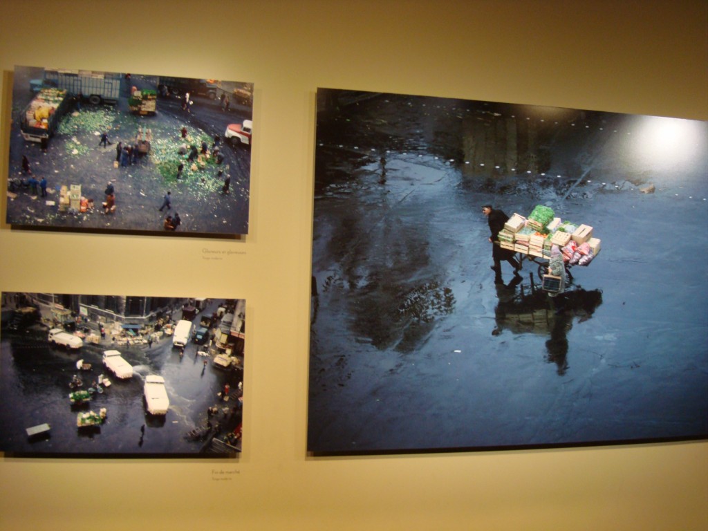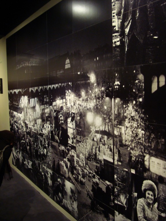 Depuis le 8 février se tient une nouvelle exposition à l’hôtel de ville ( en même temps quee se prolonge celle de Sempe jusqu’à la fin du mois je le rappelle !), celle des Halles vues par Robert Doisneau. Trois salles de clichés en noir et blanc puis en couleur qui retrace la vie de ce quartier qui fut autrefois le ventre de Paris, avant que celui-ci ne soit déplacé à Rungis.