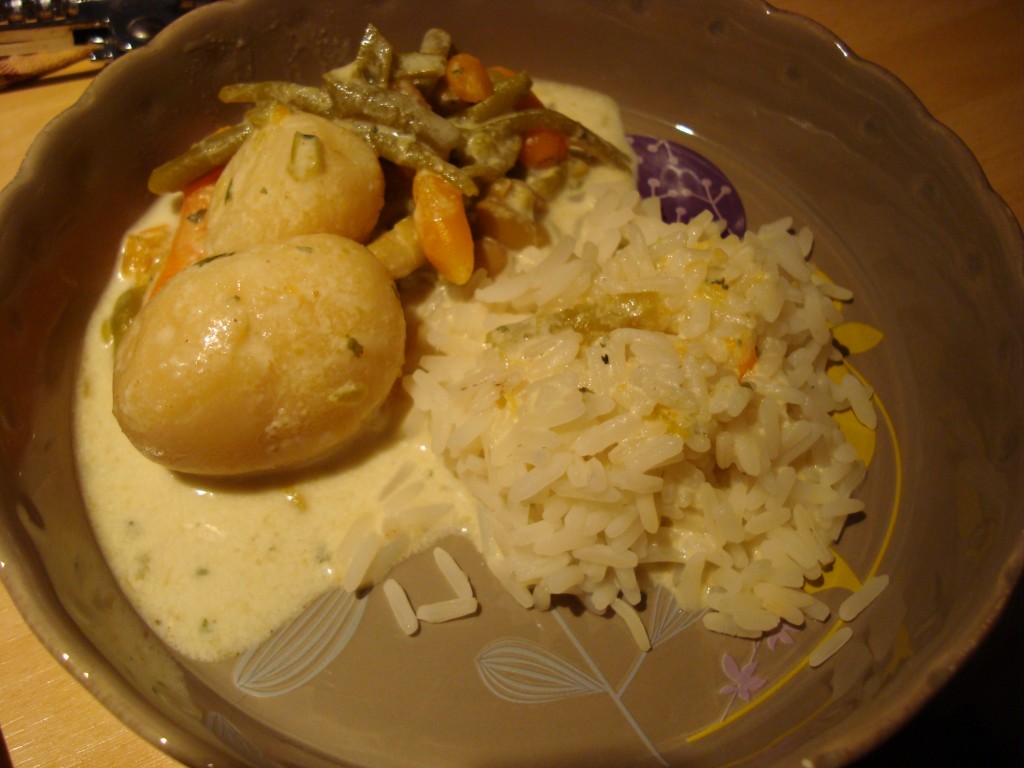 Conserve de légumes ( carottes, haricots verts et blancs, pommes de terre …) / avec une sauce curry-lait de coco – coriandre / Accompagné de riz blanc. Lire la suite