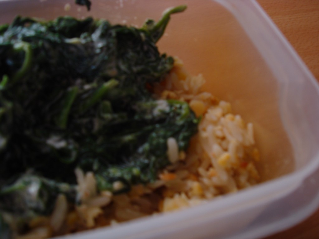 Mélange Riz/lentille/Soja à la sauce épinard. ( 10 min de préparation)
