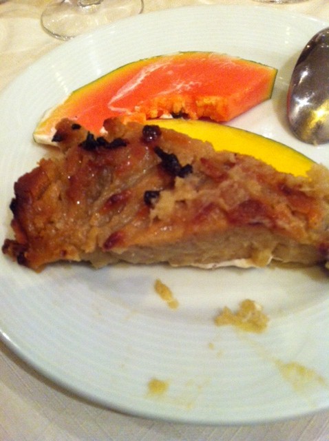 Nous sommes passés au dessert où j’ai fait une vraie découverte : le gâteau de patate douce (7€ à la carte). Dé-li-cieux ! Avec une chantilly à la vanille et quelques fruits frais ( mangue notamment), le repas s’est terminé en beauté.