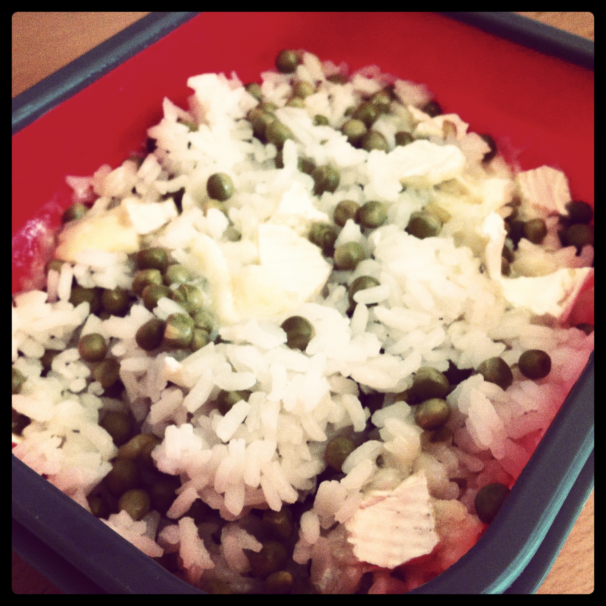 Riz Blanc/ Petit pois revenus dans de la crème fraiche + Sel et poivre/ Morceaux de brie. Lire la suite