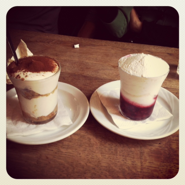 Là ou le restaurant m’a vraiment séduite, c’est sur les desserts. Nous avons pris un tiramisu, et un dessert à la crème de lait. Faits maison ( pour preuve le tout petit bout de coquille d’œuf dans le tiramisu de ma copine), ils sont délicieux, et très légers. On arrive au bout satisfait, mais sans peiner. Bref, pour 5€, le dessert nous a régalé.
