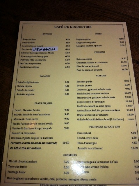 J’habite juste en face du Café de l’Industrie et je suis étonnée d’y voir toujours autant de monde ! Probablement beaucoup d’habitués satisfaits et de clients de passage attirés par la bonne réputation du lieu. C’est vrai que c’est une institution dans le quartier et les prix sont doux (ça change ^^). Ton billet me séduit : salade végétarienne et tiramisu, je valide !
