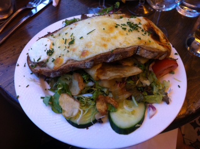 Prosper, c’est avant tout un décor rustique majoritairement fait de bois où l’on se sent bien. Une belle terrasse s’offre aux visiteurs aux beaux jours mais l’intérieur très cosy vous ravira également. Et on y mange quoi ? Des plats de viande ( burger à tomber il parait), des poissons, des croques ( Prosper et Italien notamment) mais surtout d’immenses salades qui me ravissent à chaque fois. Elles changent régulièrement en fonction des saisons, sauf la Chevalier et  la Tandoori qui résistent au fil des ans.