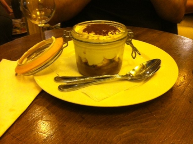 Ce qui est réjouissant c’est aussi le prix puisque ma salade Chevalier, pour 11€80 m’a calée et réjouie gustativement, même si je vous conseille de commencer par la tartine parce que froid c’est un poil moins bon. Notre tiramisu affiche un prix de 6,90€ mais il est copieux, et peut aisément être partagé ( surtout après avoir ingéré une salade entière!).
