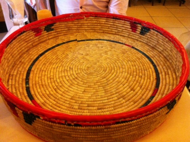 Au Négus tu es accueilli par le patron qui explique comment il a ouvert son restaurant, et si c’est la première fois que vous venez, il vous expliquera les plats de la carte. Si vous êtes végétariens, pas de panique, il y a le choix.  Je trouvais étrange cet espèce de panier installé sur chaque table, c’est là que l’on met les plats.