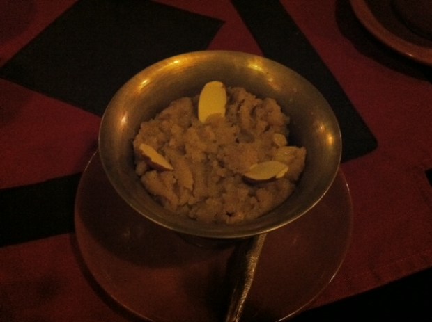 Pour terminer, un gâteau Népalais que j’ai trouvé trop peu sucré à la première bouchée mais qui m’a ensuite séduite. Un peu surprise par la texture, puisque cela ressemble plus à de la pâte qu’à un gâteau en dur, je me suis laissée surprendre et l’ai terminé malgré une place déjà plus que limitée dans mon estomac.