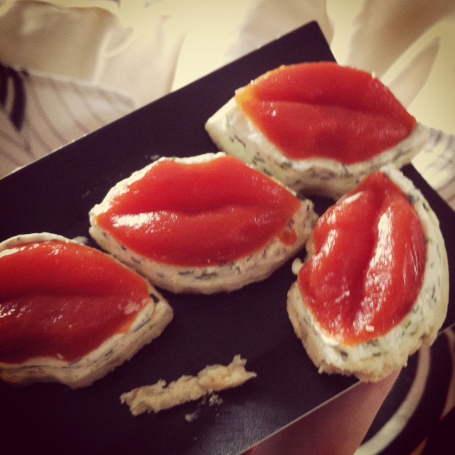 On commence avec un sourire : Des bouchées apéritives en forme de bisous, Les Bisous apéritifs, certains au foie gras, les autres au fromage frais. ( 4,95€ les 80 gr).