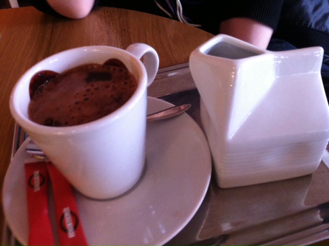 Ce dimanche, nous étions tranquilles, très tranquilles, le restaurant presque à nous. Sans surprise, vu mon envie de chocolat et de tartines, je prenais le brunch pendant que Monsieur optait pour une pizza. Le brunch est très copieux et se compose: