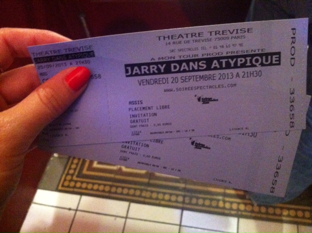 Vrai showman, très disponible pour son public pendant et après le spectacle, dinguant, virevoltant, énergique, dynamique, hilarant, et extrêmement attachant, Jarry touche juste. J’avais envie de le revoir sur scène juste après l’avoir quitté, et j’y retournerai surement très vite.