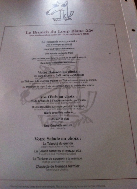 A la recherche d’un bon brunch bien copieux car j’avais l’estomac dans les talons, je me suis arrêtée devant Le loup blanc, adresse que j’avais déjà repérée et notée dans mes tablettes. Le restaurant en lui même est très accueillant avec une décoration sobre mais chaleureuse. Le dimanche, au Loup Blanc, c’est brunch. Et seulement brunch. Notez que la carte n’est plus valable, et que le seul menu que vous pouvez choisir est le menu à 22€ ( jusqu’à 29€ selon les options). Lire la suite