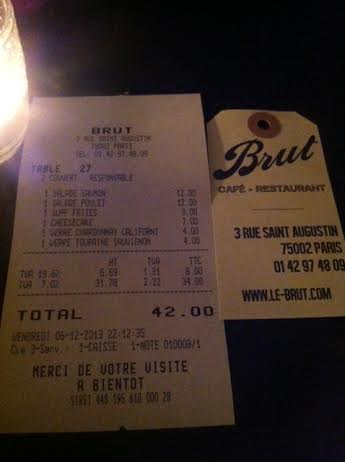 J’ai été dîner chez  » BRUT » ( Métro Bourse)