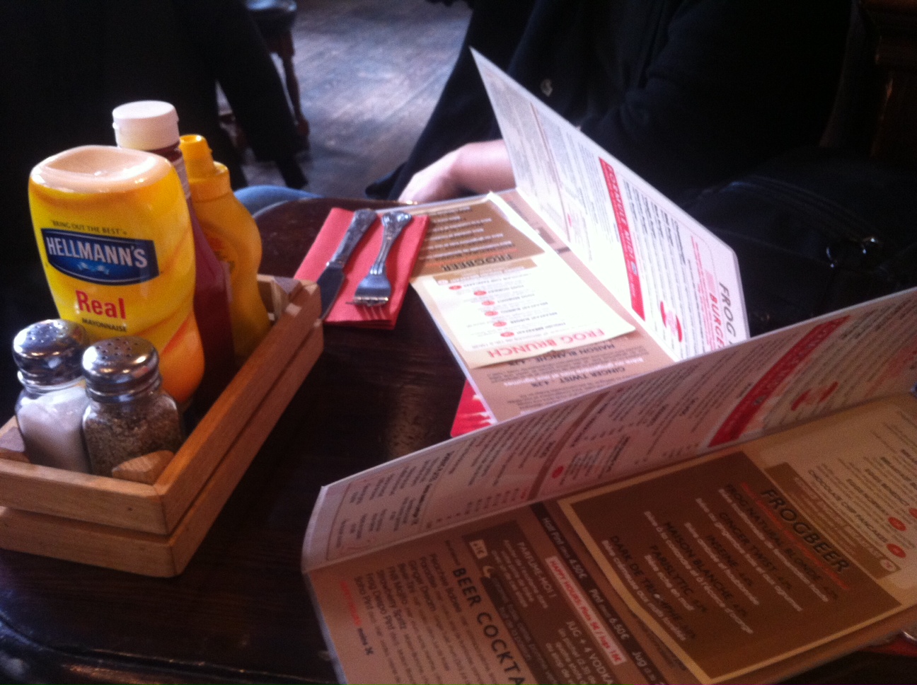 3Je vous ai déjà parlé du Frog de Bercy, c’est un lieu que j’aime bien pour boire une bière qu’ils brassent eux-même, qui sont très bonnes et d’excellente qualité. J’aime bien aussi les plats qu’ils proposent : le Falafel végétarien, le Bagel saumon et autres burgers. En ce dimanche, nous n’avions pas envie de chercher longtemps et nous nous sommes arrêtés devant Le Frog vers Etienne Marcel. J’aime bien la décoration, c’est très cosy et juste ce qu’il nous fallait. Nous avions envie de tester leur Brunch, mais …
