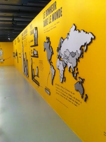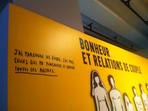 Il y a des animations ludiques, malheureusement je n’ai pas vu le vélo qui permet de produire de l’électricité à la force des mollets, et l’installation des chewing-gums ne fonctionnait pas. Dommage. A part ces bémols, j’ai aimé m’interroger moi aussi sur le bonheur, lire des phrases qui semblent simples mais qui sont de vrais enseignements pour nos vies, comme le fait que se plaindre n’avance jamais à rien bien au contraire. J’ai aimé découvrir ce graphiste, cette figure pop du design, dont j’ignorais tout, et qui, à travers sa quête, se dévoile habilement.