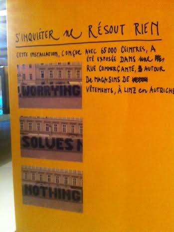 Oui, je suis super déçue pour les installations manquantes, malgré que ça soit une super expo. J’ai été émue par les inscriptions, je l’ai trouvé bien faite, posant de bonnes questions et en effet, on en sort presque apaisé !