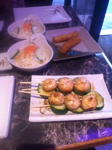La bonne surprise du soir, c’est déjà le prix, puisque la formule à volonté ne vous coûtera que 14,90€. Imbattable, je n’ai encore jamais vu moins cher. J’étais curieuse de voir ce qu’il nous était proposé pour ce prix défiant toute concurrence. C’est une carte plutôt variée avec ce qu’il faut : des sushis, des makis, une salade de chou, des fritures au fromage, deux choix de desserts ( nougats et leetchis), des brochettes ... Cependant, il n’y a pas de tempura de crevettes ou de sashimis ( 5€ supplémentaires). Cependant, pour le prix, je ne me plaindrai pas, il y avait largement de quoi faire même pour un estomac affamé ! Niveau variété, on est pas trop mal. Et niveau gout ?