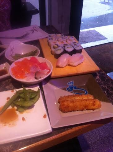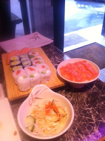 Niveau gout, c’est pas mal. Rien de rédhibitoire, rien de transcendant, mais du standard. Rien de mauvais, bien que suite à la lecture d’un avis sur tripadvisor, j’ai quand même soigneusement évité les produits à base de surimis ! Niveau quantité de garniture, notamment dans les sushis ou les makis, il y a pas mal de riz, c’est certain. Cependant je n’ai pas été déçue, j’ai mangé à ma faim, et pour couronner le tout, pas de mal de ventre à la sortie, c’est indispensable de le noter !