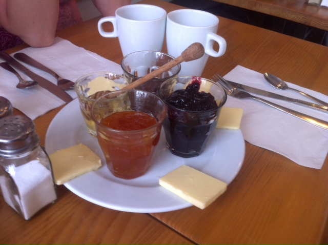 Premièrement, n’emmenez pas un carnassier. Il serait malheureux comme les pierres avec les deux formules au choix : détox et nature, qui ne contiennent pas ou très peu de viande. Les deux formules proposent une panière de pain et de brioche accompagnée de beurre et de confitures, il y a aussi une tartinade au chocolat que j’ai trouvé très amère. Et le pain, s’il était très bon, avaient une sensation de trop peu. Pour le positif, les deux confitures étaient excellentes. Pour accompagner cette partie petit déjeuner, vous avez une boisson chaude à volonté au choix : café, thé ou chocolat au lait. Je n’ai pris qu’un chocolat, et nous n’avons pas commandé une seconde fois du thé.