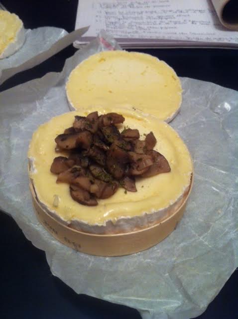 Ingrédients : 4 camemberts jeunes et entiers dans leur boite / 500 gr de champignons de Paris / 2 gousses d’ail / du romarin frais ou des herbes de Provence / Sirop d’agave.