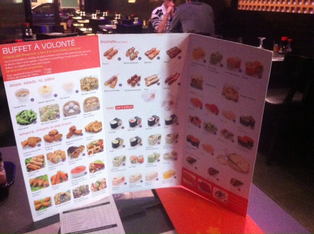 La carte contient tout ce qu’il faut : makis, sushis, edamame, tempura, salade de chou, chirashi, et même six pièces de sashimi. La carte présente ainsi un vaste choix, varié et appétissant. Attention au gâchis, les portions sont facturées 2€. Je suis sortie de là en roulant mais les produits sont bons au gout, la quantité de riz comparable à ce que l’on trouve ailleurs dans les sushis et les makis, pas de mal de ventre à déclarer.