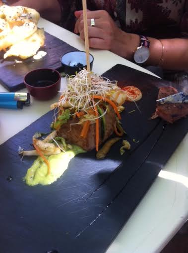 A la carte : aubergine grillée, steak de jambon, tartare de thon, risotto de bolet, tempura de légumes, provolone ( fromage fondu) etc …
