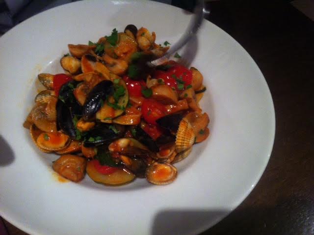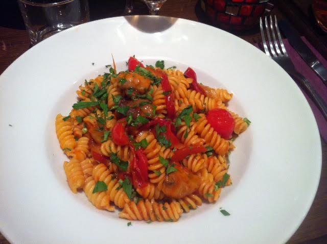 Nous avons tous décidé d’opter pour un plat de pâtes et un dessert. Ici on ne sert pas de pizza, il s’agit d’une trattoria ! Tout est fait maison avec des produits frais. Nous avons opté pour des Fusillis végétariennes (12€) et un plat de Tagliatelles mer et montagne (15€). Si les fusillis m’ont parues assez copieuses, les tagliatelles l’étaient beaucoup moins (le problème des fruits de mer à coques … ça prend de la place, mais ça ne nourrit pas !). Dans tous les cas, c’était délicieux.