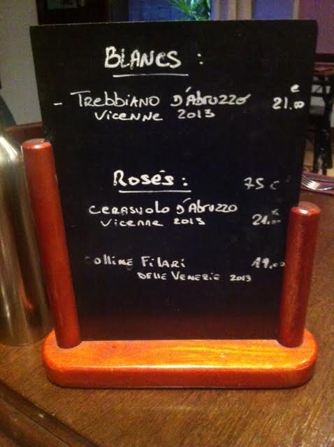 Avant de démarrer nous commandons un pichet de rosé. Ici pas de cartes, seulement des ardoises, au nombre de trois, et des plats qui changent régulièrement.