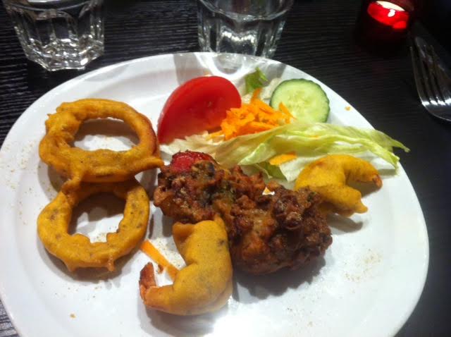 A la carte, des classiques des restaurants Indiens. Nous avons opté en entrée pour un mix pakora (assortiment de beignets: légumes, crevettes et oignons) à 8€, satisfaisant mais sans éclat. En revanche l’autre entrée était à tomber (8€), un plat d’aubergines dont j’ai oublié le nom mais dont voici la photo :