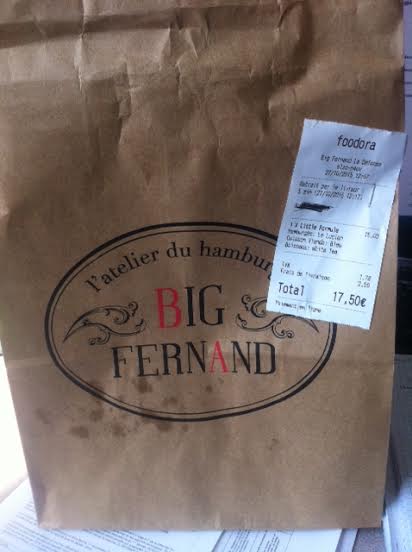 2A la Défense, au petit matin et à la sortie du métro, d’agréables jeunes femmes distribuaient des flyers au message pour le moins interpellant : -8€ sur votre commande Big Fernand avec un code promo. J’apprenais ainsi qu’il y avait un Big Fernand à la défense, et que je pouvais ainsi tester le service de livraison Foodora. Un midi, pris d’une frénésie, la majorité de l’équipe s’était donné le mot pour passer commande. Quid de ce test du service de livraison Foodora, et du Lucien, le hamburgé VG du plus frenchie des restaurants de burger ?