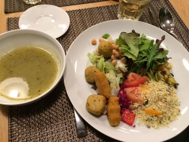 Le menu, à 9,95€ comprend le buffet à volonté et du thé. Le buffet froid met à l’honneur les crudités, les pâtes, la semoule ainsi que quelques préparations à base de soja.