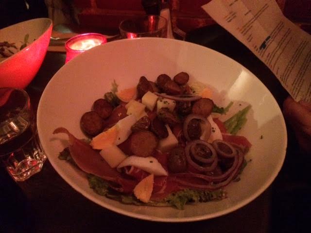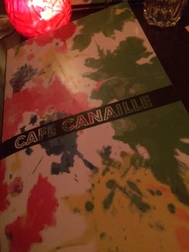 Nous avions prévu de dîner rapidement avant de nous rendre au théâtre Déjazet pour la première de Stéphane Guillon (oui, ça date). Arrivés vers 19h45 nous n’avions guère beaucoup de temps et avons pressé le serveur, qui loin de s’en montrer agacé a pris notre commande plat + dessert et nous a servi relativement rapidement. Lorsque l’on entre dans le café canaille c’est le décor intimiste qui happe le client, les livres au mur, la décoration s’avère particulièrement soignée. A la carte, quelques entrées, de grosses salades, quelques plats et des desserts.