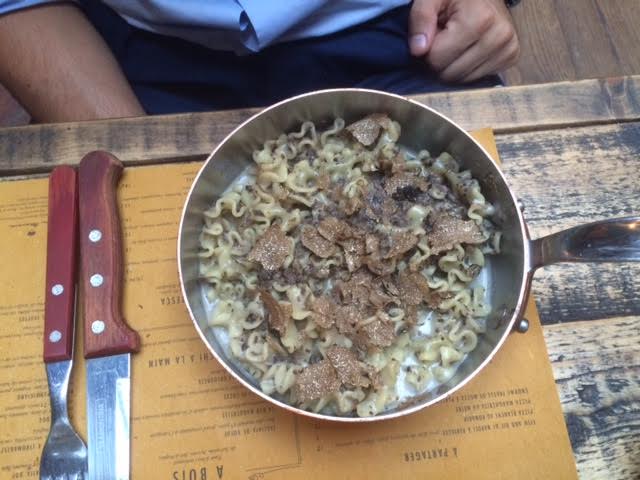 La fameuse pâte à la truffe (18€) a beaucoup plu à Monsieur. C’est bon, en effet, avec un gout prononcé de champignons, une sauce crémeuse et une portion plutôt copieuse (plus ne nous aurait pas gêné !).