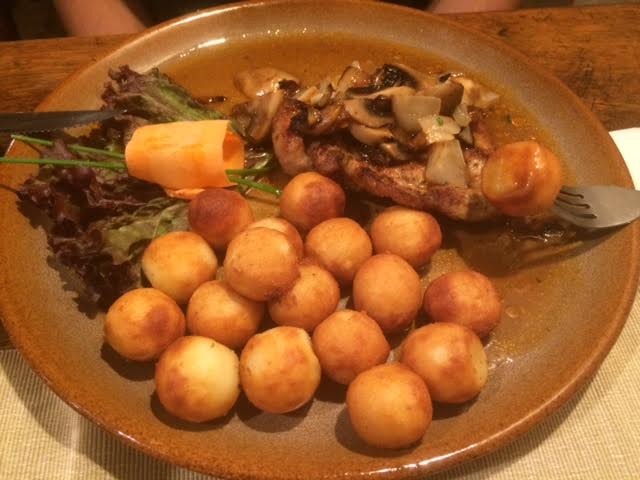 Nous nous sommes contentés d’un thé glacé maison et d’une pinte sur un petit balcon qui surplombe un petit cours d’eau, en compagnie d’un moulin typique. Un moment de féerie, romantique à souhait. Nous vous recommandons plutôt d’y boire un verre que d’y manger, les critiques de la cuisine ne sont pas élogieuses.