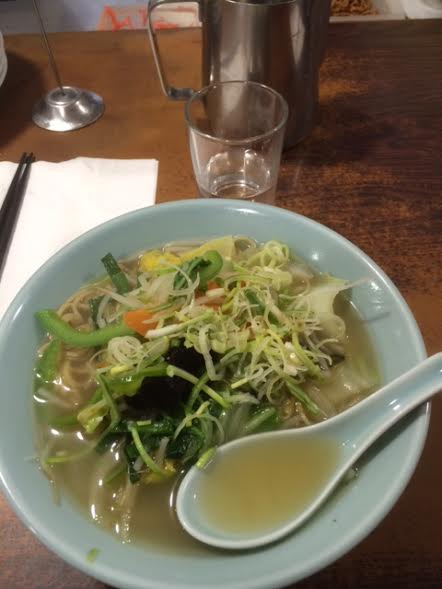 La réputation d’Higuma n’est plus à faire, puisque devant cette cantine japonaise, la file d’attente se prolonge dans la rue dès 19h30 le soir. Vous y trouverez à la carte Miso lamen, Kimuchi lamen, Katsudon, Tendon, et des Gyozas, le tout à des prix très raisonnables. J’ai choisi le seul Lamen végétarien, YASAI LAMEN (8.5€) qui est un bol de bouillon à base de sel avec pâtes fraîches, beaucoup de légumes variés. Roboratif, ce plat m’a suffit à satisfaire mon appétit !