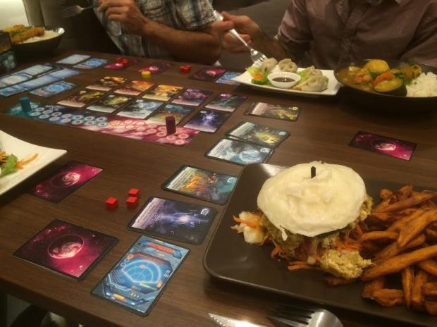 J’ai connu Meisia lorsque le lieu était installé à Belleville: Meisia à Belleville . J’y suis retournée, même cette fois ci à l’adresse de Strasbourg Saint Denis. Le lieu est grand avec un rez-de chaussée et une grande salle climatisée en sous-sol. Vous avez également accès une large terrasse pour profiter des beaux jours. Meisia est un bar à jeux, proposant diverses formules basées sur un système de consommations et vous permettant de profiter d’un large panel de jeux de société. Nous y sommes allés pour une semaine événement précédent le Weekend Paris Ludique (24/25 juin) ce qui nous permettait de consommer une seule boisson et de rester toute la soirée.