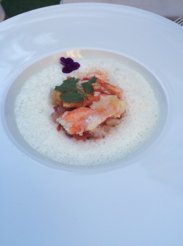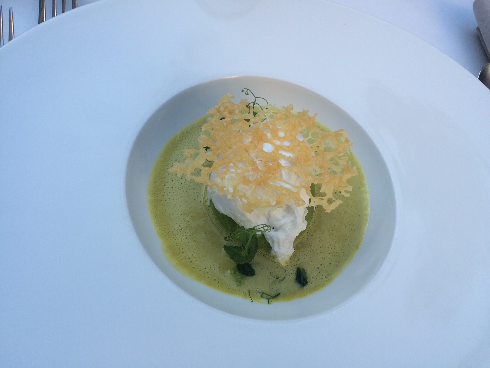 En entrée, j’ai opté pour l’œuf parfait bio ( 12€ – végétarien), et monsieur pour le crabe à la thaï (14€). La petit tulle de parmesan, et la délicieuse pâte de petits pois m’ont séduite, l’entrée fut une divine entrée en matière. Le crabe ne fut pas en reste avec son explosion de saveurs.
