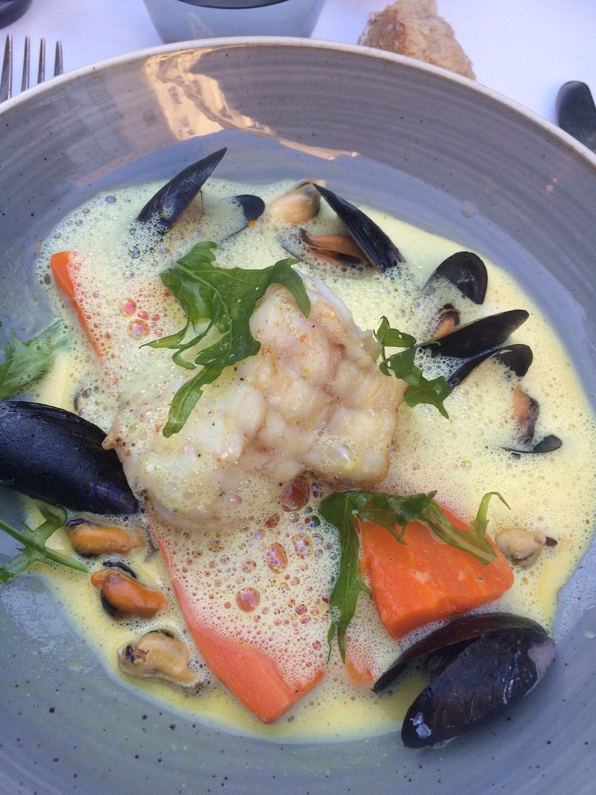 En plat, j’ai du tordre le cou à mes principes de végétarisme par manque de plat adapté, et me suis tournée vers le curry de lotte aux coquillages (24€) et ses carottes des sables fondantes. Un véritable régal, même si j’aurais préféré une lotte légèrement moins cuite. Ce fut toutefois divin.