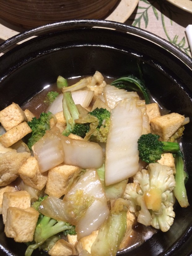 En plat, il optait pour la marmite de crevettes au tofu (10€), tandis que j’optais pour la version végétarienne, la marmite de tofu aux légumes (7,5€).  Le bouillon est plein de saveurs, et très léger. Un bon plat léger et savoureux en somme.