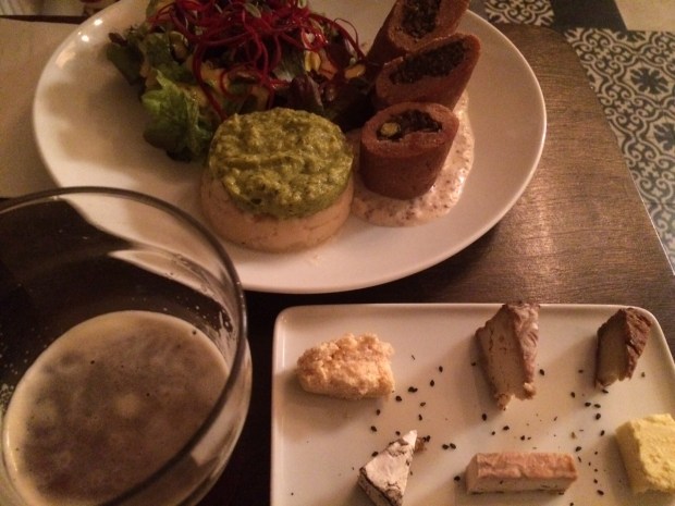 C’est bio, c’est bon, c’est végétal. La décoration est celle du vrai bistrot Parisien, dans lequel on se sent à l’aise, avec le zinc au milieu de la salle de restaurant. Et en plus, on est accueillis et servis avec le sourire. Nous avons rencontré le patron qui a pris le temps de nous expliquer sa carte, les plats du jour et  sa propre démarche. J’ai senti un véritable enthousiasme de la part de l’équipe, qui explique volontiers les recettes et les recherches culinaires qu’ils mènent pour arriver à de tels résultats. C’est un moment d’échange en plus d’un bon moment gourmand.