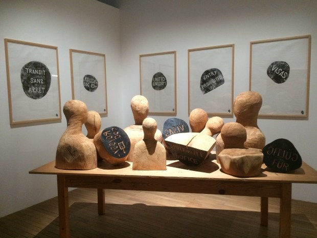 L’exposition Persona Grata interroge la notion d’hospitalité au travers d’installations diverses : vidéos, sculptures, peintures … L’objectif est de questionner notre rapport à l’autre, à l’étranger, à celui qui représente une menace, qui est diabolisé. A travers l’histoire ce migrant qui fuit son pays est passé d’une nationalité, d’une couleur à l’autre. Tendons-nous la main ? Si oui, comment, pourquoi, à qui ? Sommes-nous hospitaliers, ou simplement secourables ? Le lien entre l’hospitalité et certaines œuvres me semblent parfois ténu, mais qu’importe, l’objectif est rempli, je me suis questionnée. A l’heure où la question de ceux que l’on appelle les « migrants » brûle l’actualité, il est de bon ton de s’interroger et d’interroger ses croyances.