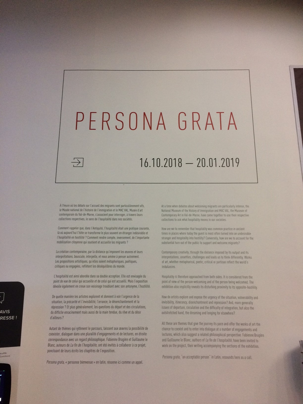 Nous avons passé plus de 2 heures dans le musée et n’avons pas tout vu. C’est une bonne base pour appréhender les questions migratoires Françaises, et le musée organise nombre de festivals et de conférences autour du thème, notamment en collaboration avec le MAC VAL (Le Musée d’art contemporain du Val-de-Marne). D’ailleurs pour l’achat d’un billet pour l’exposition Persona grata dans l’un des deux musées, vous accédez à l’exposition du même nom dans l’autre musée, l’exposition étant divisée en deux lieux.
