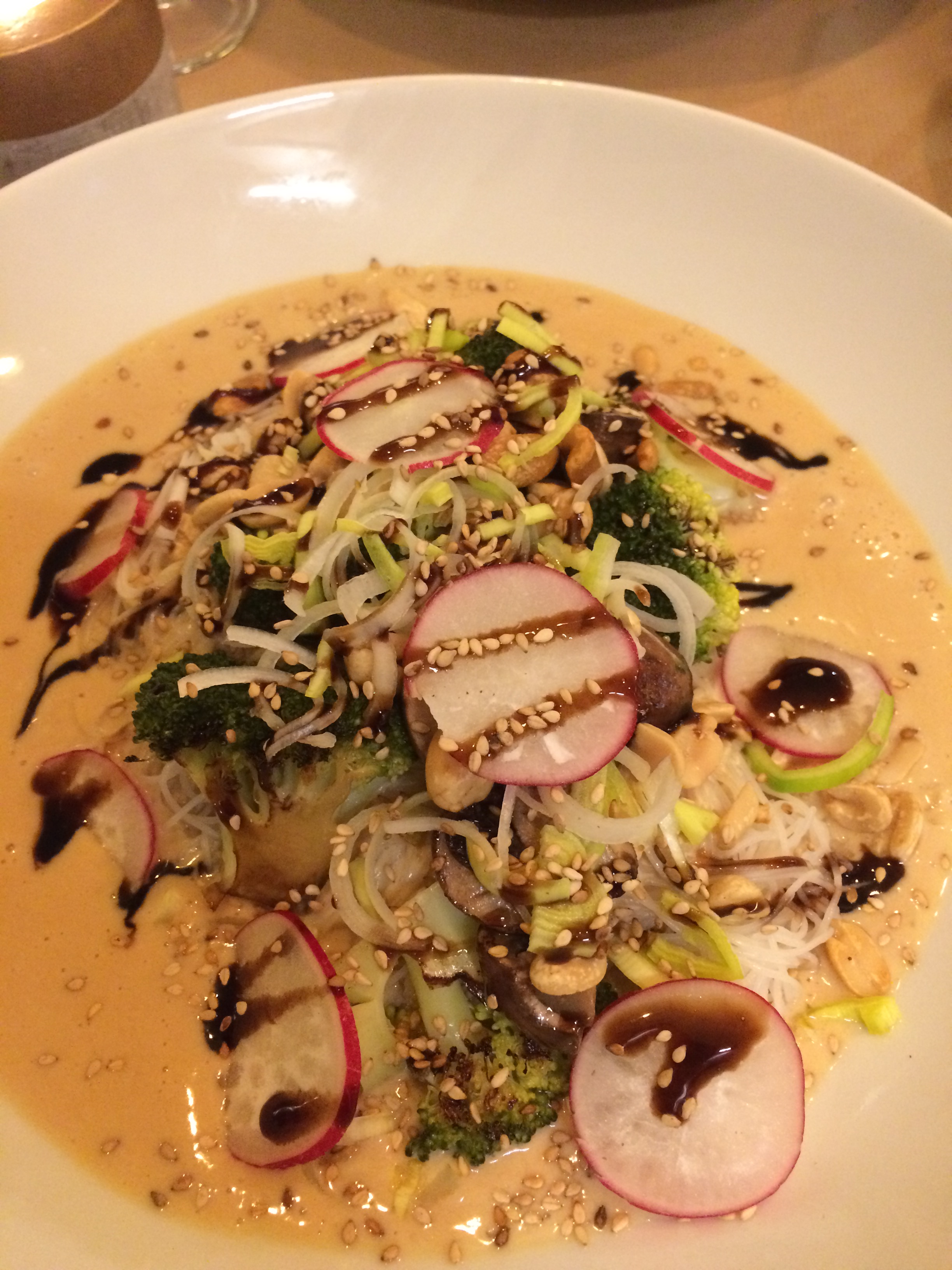 Bon, on a compris que c’était beau, graphique, original et inventif. Mais c’est bon ? C’est pas bon; non ! C’est une véritable explosion de saveurs à chaque bouchée. La cuisine végétale prouve une fois de plus ses qualités gustatives, son inventivité et sa diversité de gout. Les sauces qui accompagnent les plats sont astucieuses, et de « simples lentilles » se transforment en plat d’exception. Les plats sont chers, d’autant qu’ils ne contiennent aucun produit animal. Mais ils sont si beau, si bons, si soignés, et apportent tant de bonheur, que je dirais que le rapport qualité/prix s’avère plutôt équilibré.