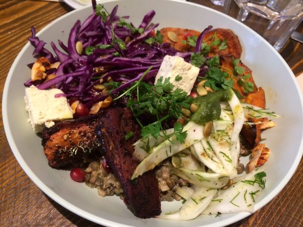 Situé rue Mandar, ce charmant petit restaurant vous accueille jusqu’à 17h30 pour déjeuner, bruncher ou goûter.  La carte change régulièrement au gré des produits de saisons : des bowls colorés, des burgers mais aussi des hot dogs et des gaufres, la carte fait clairement saliver. Le concept c’est de la cuisine 100% végétale, de saison, faite maison et sans plastique. Dans l’assiette, c’est tout à fait concluant. J’ai opté pour le burger sans supplément (7,5€) et même avec sa simple patate douce et ses oignons caramélisés, il fond dans la bouche et promet un excellent moment. Les patates aux herbes de Provence sont parfaites et pleine d’huile d’olive ! Monsieur s’est laissé tenter par le Mama Bowl aux délicieuses saveurs (10€). Enfin, nous avons partagé un banana bread fondant et délicatement parfumé (2,5€). La carte est absolument parfaite pour un brunch ou un déjeuner dans le quartier Montorgueil !